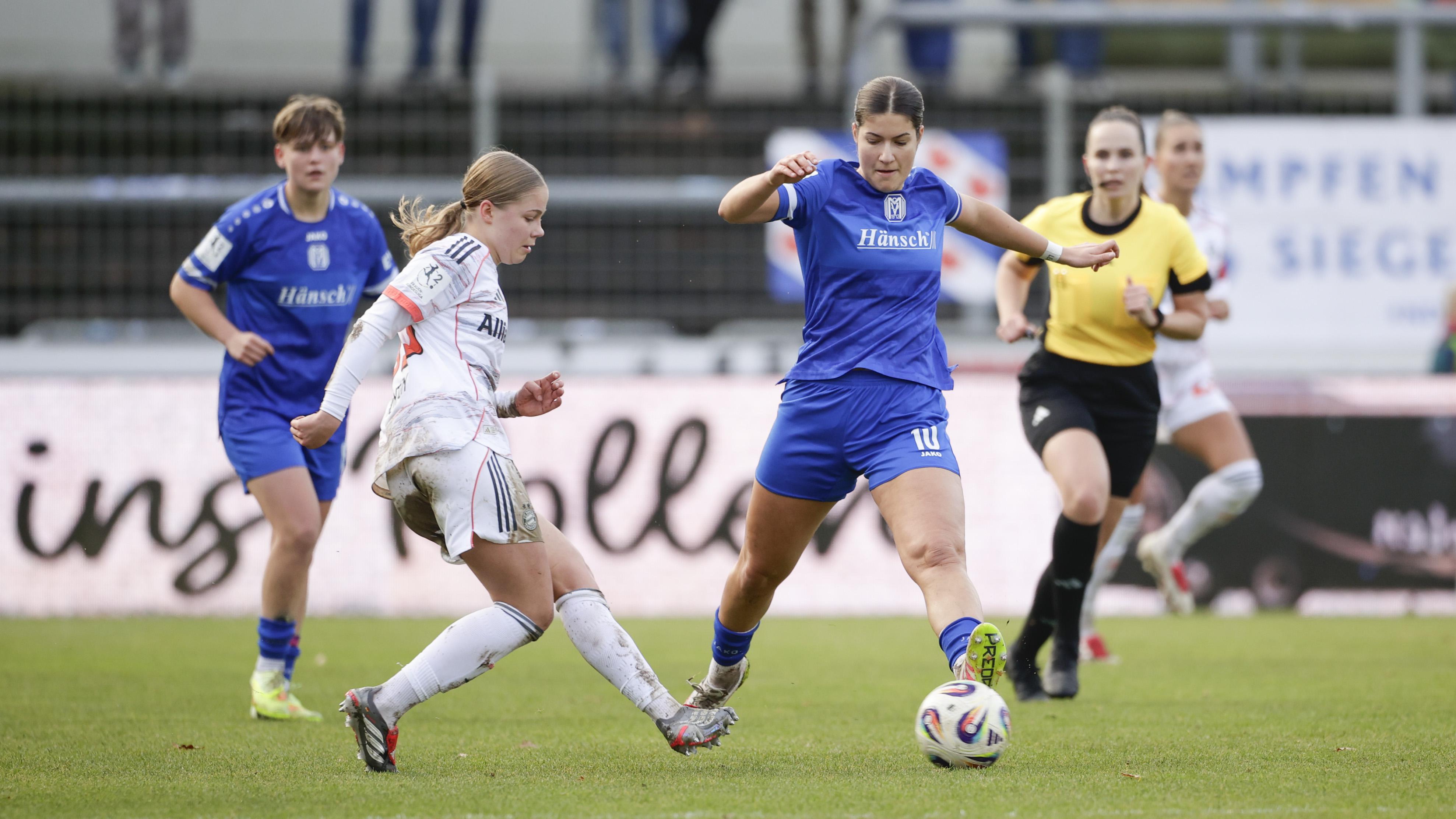 Als die Partie früh einen Rückschlag brachte — mit dem 0:1 durch einen Treffer der Bayern bereits in der 11. Minute — schien kurz Gefahr für Meppen aufzukommen. Doch das Team reagierte mit großem Willen und Stabilität. Noch vor der Halbzeit sorgte Lea Mauly mit dem Ausgleich (36.) für neuen Schwung.